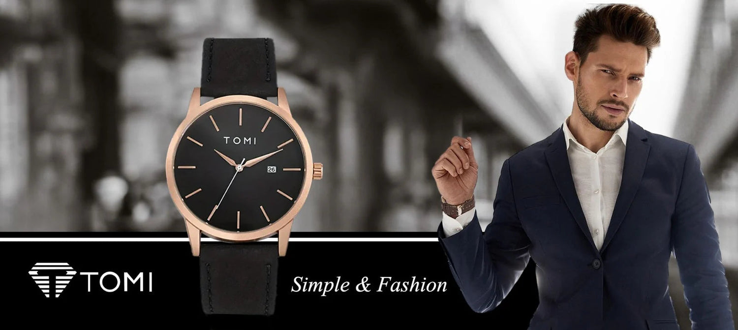 TOMI T-084 Men's Watch Quartz Date Leather Straps